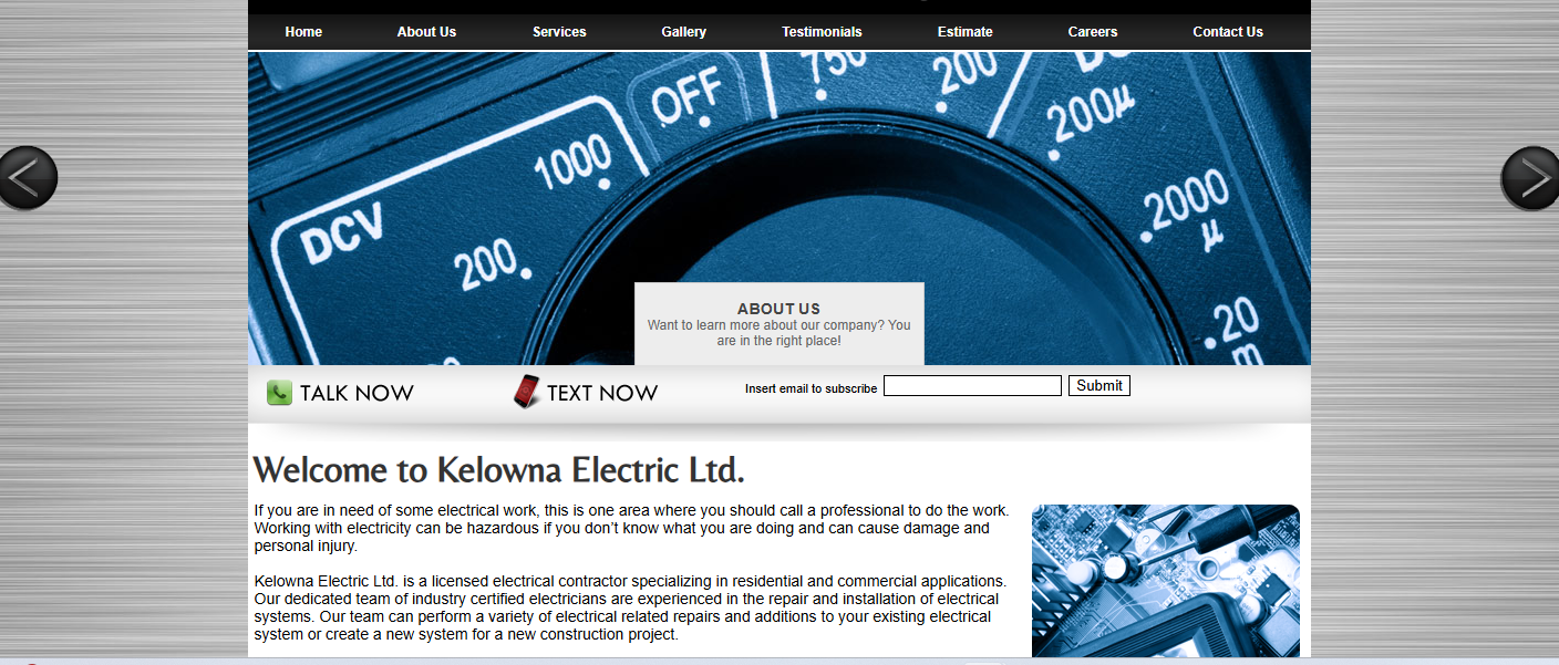 Emergency service highlight and 24/7 contact features for an electrical contractor.